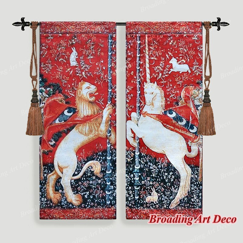Its hangs on a wall! Thousand flowers) and woven in flanders from wool and silk, from designs (cartoons) drawn in paris around 1500. Look for it at the curio shop! In this tapestry, both lion and unicorn are rearing, and the monkey is at her feet, eating something, likely from the same dish. Wall hanging flowers 25w x 36l colorful flowers w/rod. Best tapestry selection online, only $29 shipping to europe! The lion and unicorn bellpull celebrates two leading characters, one might say, from the celebrated lady and the unicorn tapestries. It matches the rampant unicorn tapestry. The lion, again to her right, holds the pennant. In taste, the noblewoman takes something from a dish, held by her maid, while looking at a parakeet in her hand. Free shipping for many products! Medieval tapestry, unicorn wall art, french decor, lion tapestry, classic art, renaissance art, famous art decor, medieval decor, red art sharpshirter. In this piece, we see the protective lion in a mille fleur styled backdrop, holding up the pennant bearing the royal emblem or crest of the le viste family, specifically to jean viste, who was a nobleman to the reigning king charles vii.